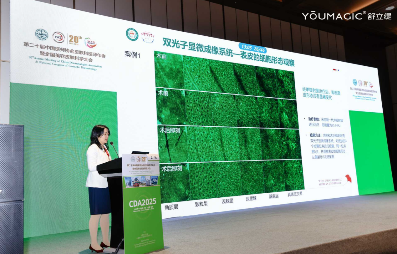 四川大学华西病院皮肤科副主任文翔则聚焦疗效评估体系改良,提议“客不雅检测+主不雅评价”的科学范式。并共享了团队的辩论效果,示意舒立缇调整后,下颌提拉效果彰着,皮肤弹性显贵加多;调整1个月皮肤厚度升迁约0.03厘米,且皮下脂肪层无彰着容积弃世;且双光子等检测证明表皮、真皮层结构无特殊,为产物安全性与灵验性提供了多维度实证,也为行业提供了可复制的评估圭表。